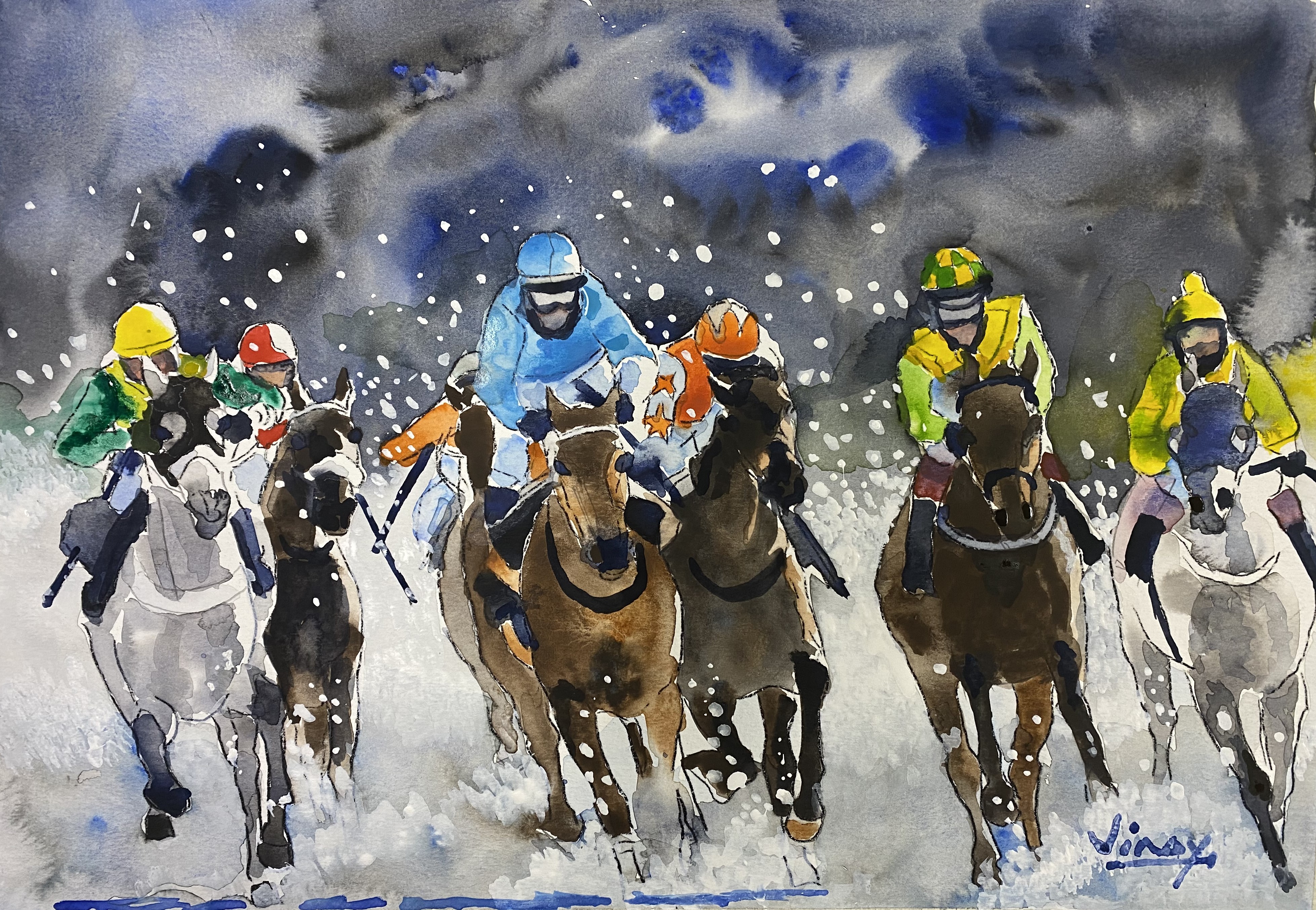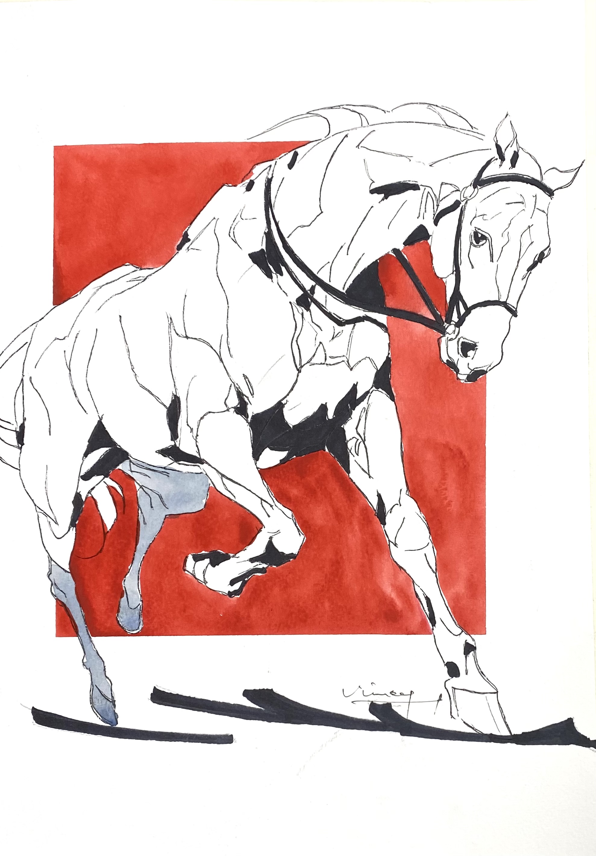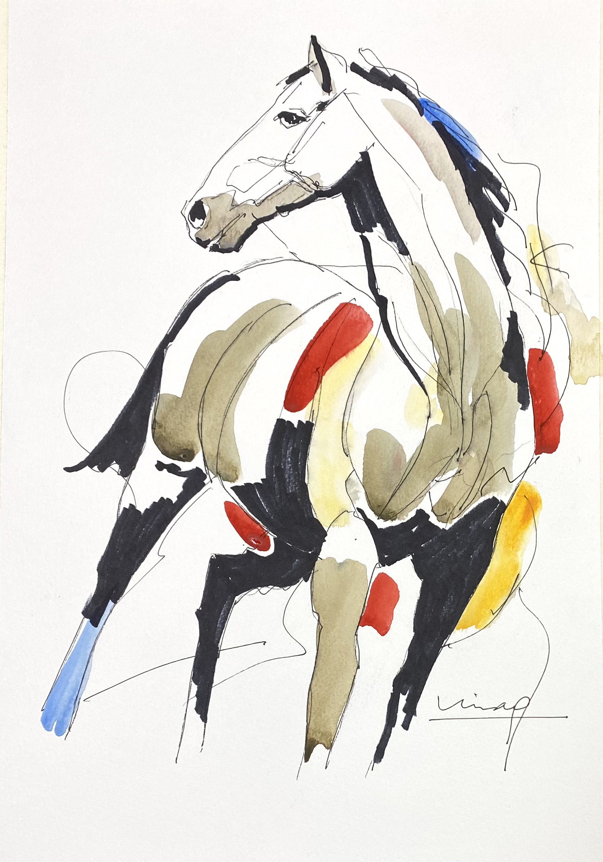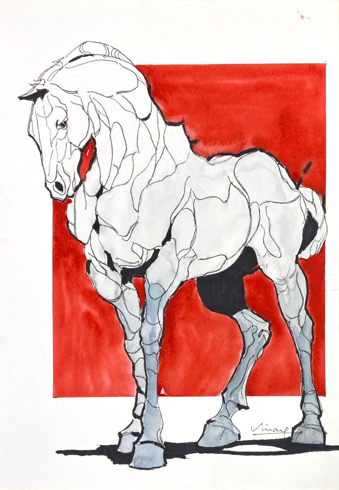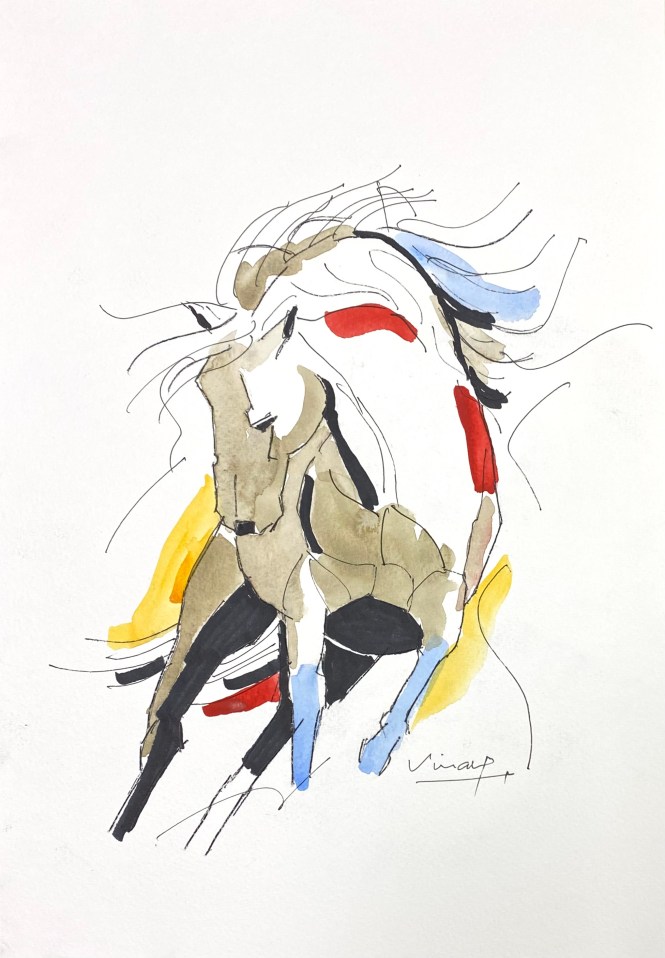 Horses have always fascinated this artist, with their fine equine forms accentuated by motion or their regal shapes while standing still. Clearly this artist’s favorite subject.
